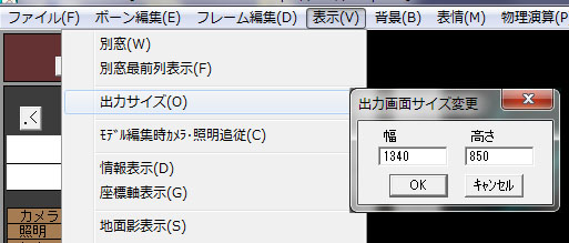 表示→出力サイズで出力サイズを1340×850以上に変更します。